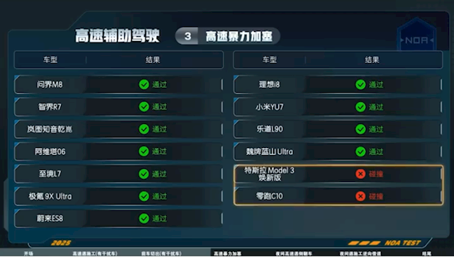 先说论断,在高速暴力加塞场景下,大部分车型齐能加快通过,唯有零跑C10和特斯拉Model 3焕新版交了白卷。