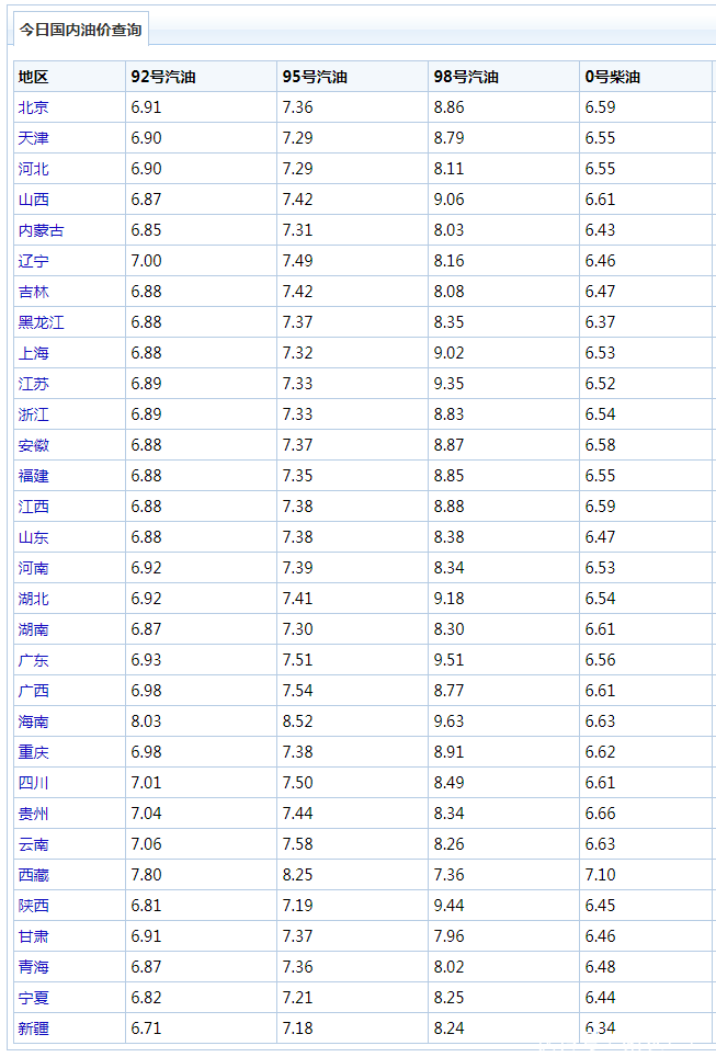 附:世界各省市加油站92,95号汽油以及0号柴油价钱(仅供参考)