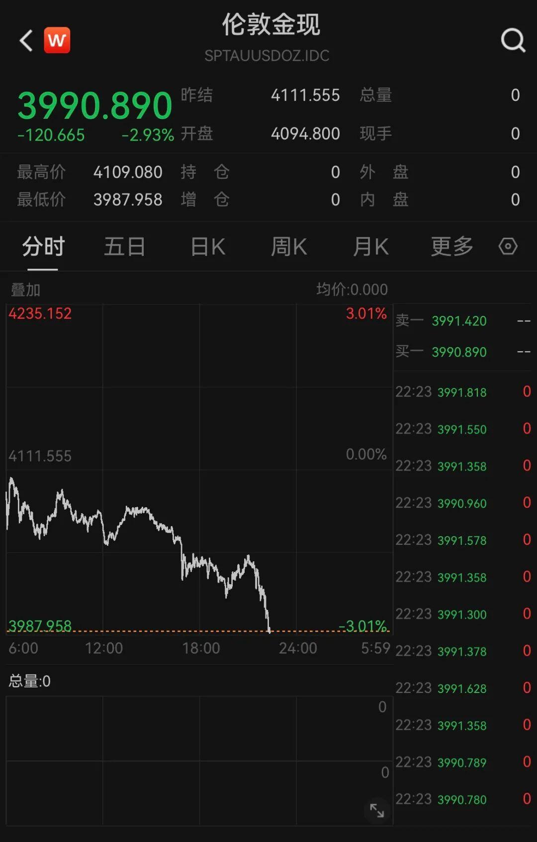 北京技巧10月27日晚间,伦敦现货黄金盘中跌破4000好意思元/盎司,死亡发稿,最低波及3987好意思元/盎司,日内跌幅扩大至2.8%。现货白银跌超4%开云体育,报46.5好意思元/盎司。